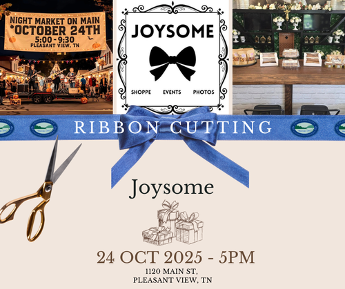 Come join us for the ribbon cutting at Joysome. While you're there, stay and shop, listen to music and more because it's their NIGHT MARKET that night too!